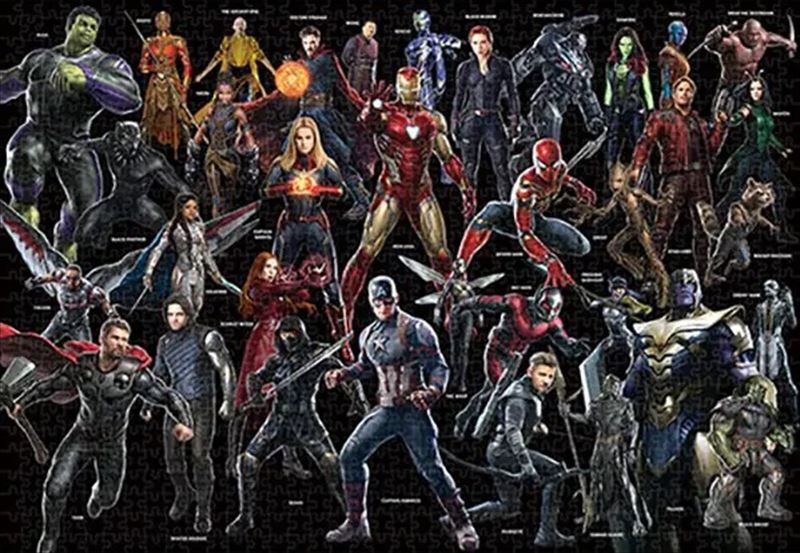 | 特徴 | 2008年公開「アイアンマン」から始まったマーベル・シネマティック・ユニバースの主要なキャラクター35体が大集結した豪華なアートです。「ローニン」や「ブラックオーダー」などあまり商品化のないキャラクターまでラインアップしたとても希少なジグソーパズルです。 |
